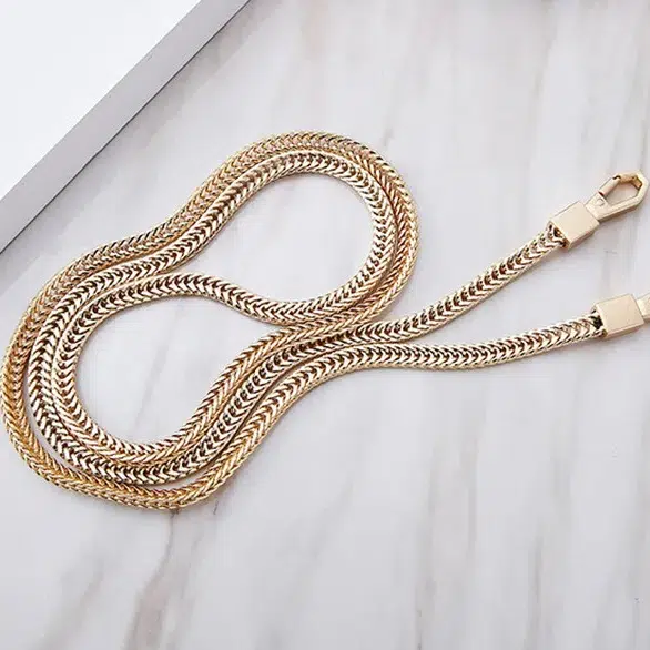 Notre chaîne de sac en métal dorée est conçue pour durer. Le métal résistant assure que la chaîne maintiendra son éclat et sa forme même avec une utilisation fréquente. Les fermoirs robustes garantissent que la chaîne reste bien attachée à votre sac, offrant sécurité et tranquillité d’esprit tout au long de la journée.