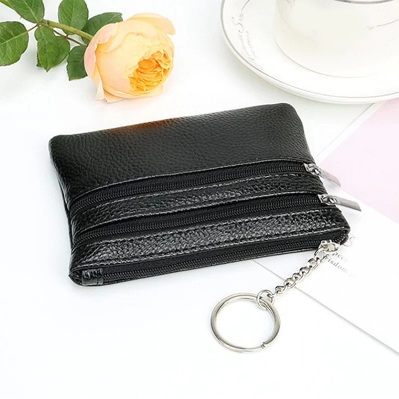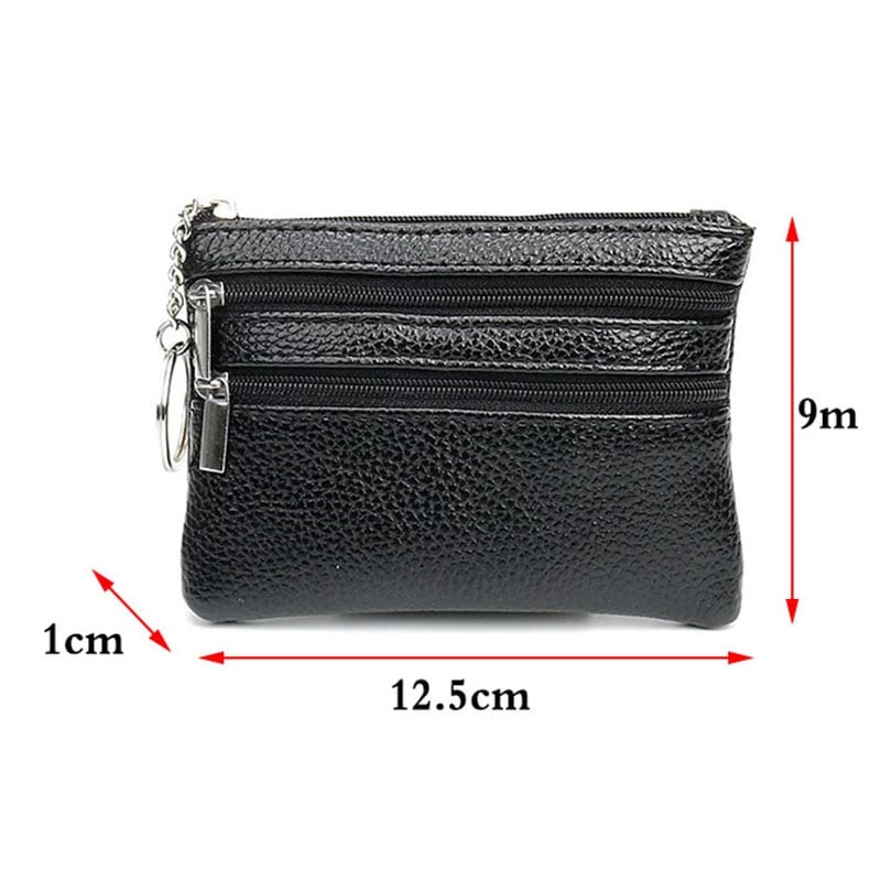Voici le mini portefeuille avec double fermeture éclair en cuir multifonctionnel !