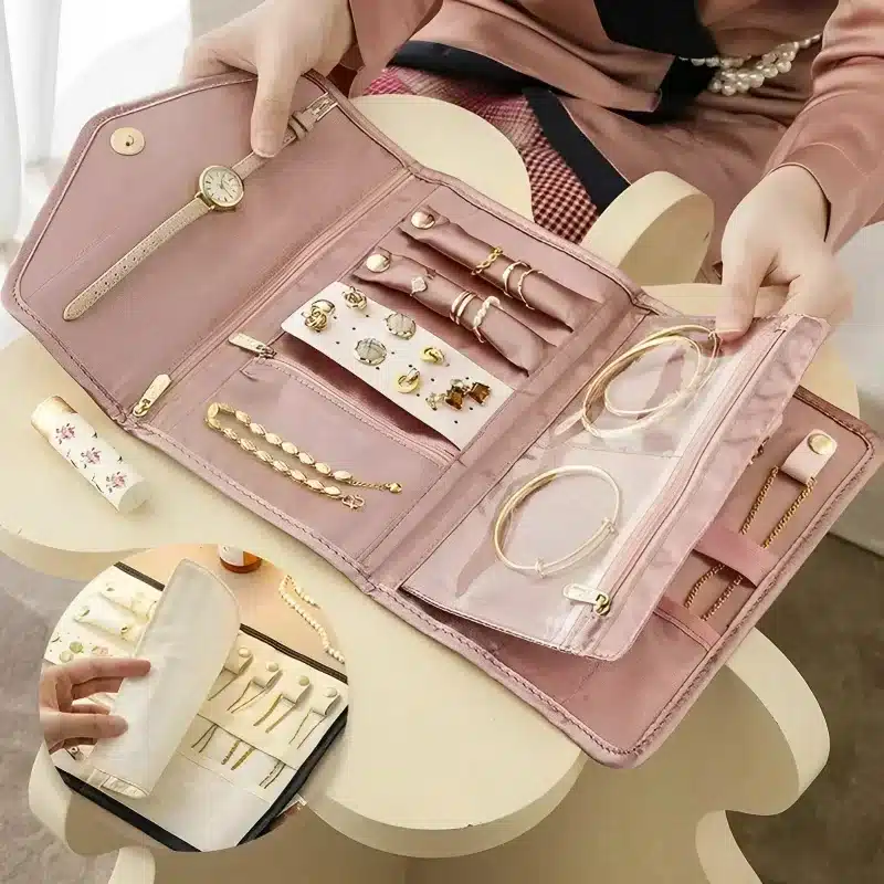 Outre son rĂŽle de protecteur de bijoux, cette pochette rose se transforme facilement en un accessoire chic pour vos soirĂ©es ou en un organisateur pratique pour vos essentiels de voyage. Sa conception modulable la rend idĂ©ale pour une variĂ©tĂ© dâusages, du rangement de bijoux Ă celui de petits accessoires de beautĂ©. Le mariage entre fonctionnalitĂ© et style fait de cette pochette un must-have de notre collection de pochette et portefeuille.