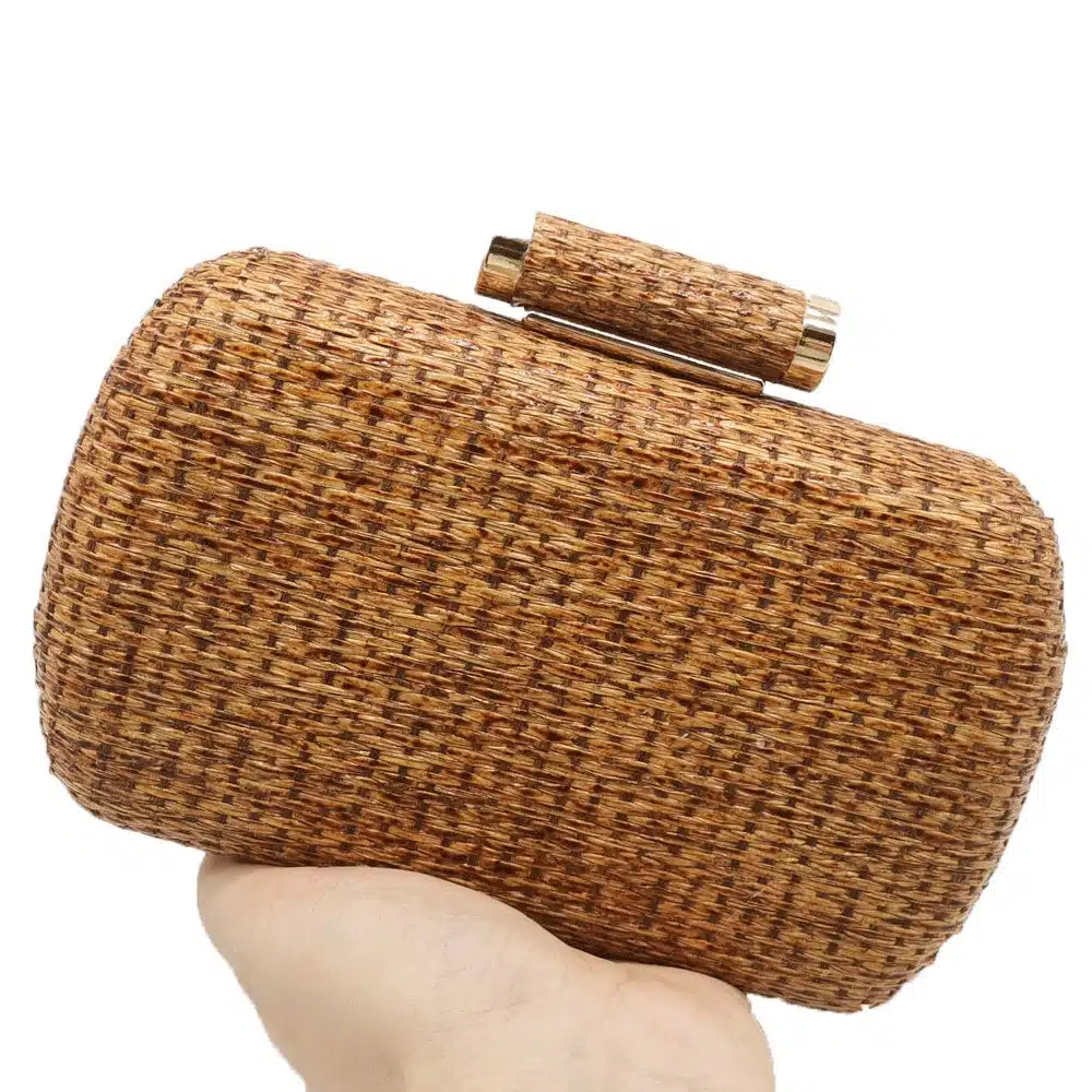Faites-vous remarquer lors de votre prochaine soirée avec cette magnifique pochette en paille. Fabriquée de main de maître en paille, cette pochette est la quintessence de l’élégance estivale. Le rabat avant est orné d’une délicate bordure dorée et le sac se ferme à l’aide d’un discret bouton-pression magnétique. L’intérieur spacieux est entièrement doublé, parfaite pour ranger vos essentiels. Portez-le en pochette, ce sac ravissant ne manquera pas de faire tourner les têtes.