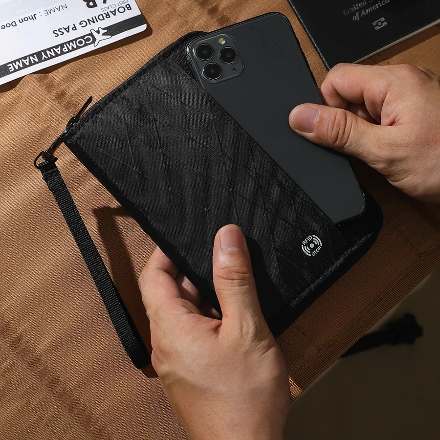 La pochette passeport noire de grande capacité est conçue en polyester de haute qualité, garantissant une protection optimale pour vos documents de voyage. Pour ceux qui recherchent une pochette et portefeuille fiable et élégante, cette pochette est le choix idéal, combinant sécurité et style.