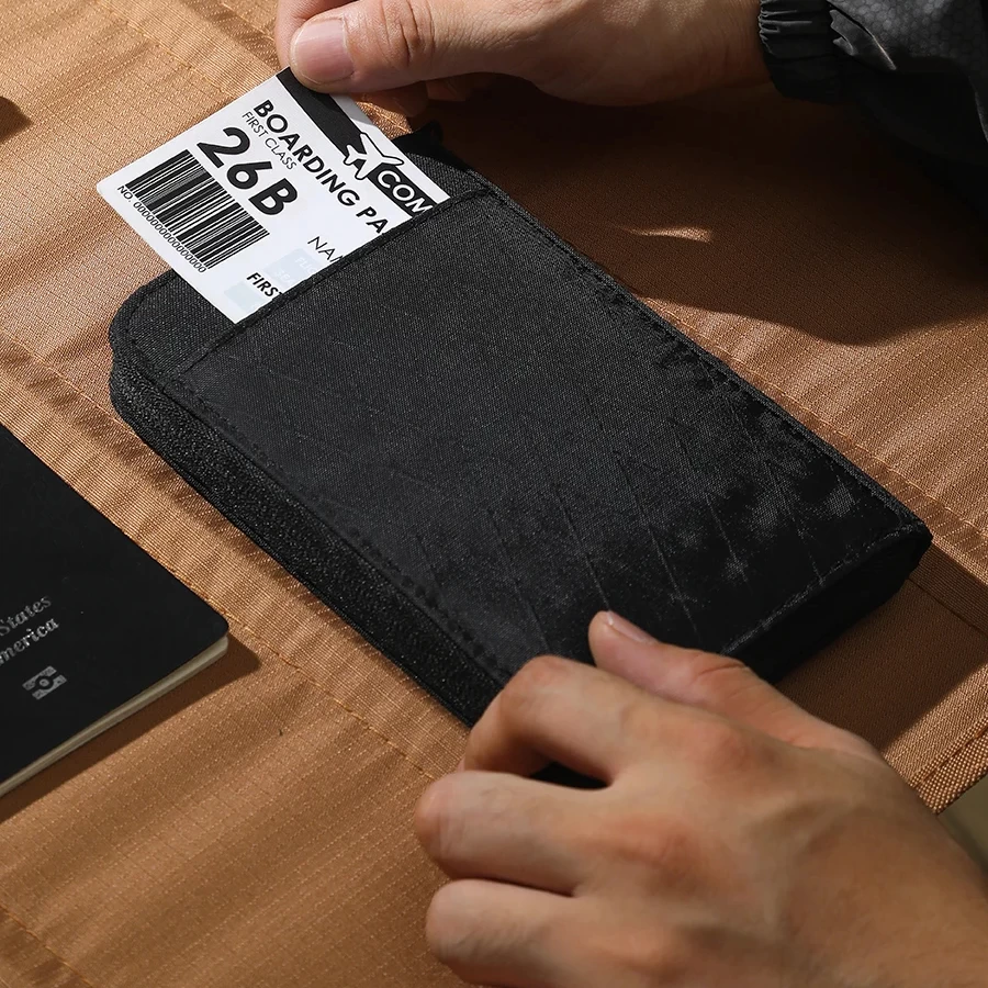 Cette pochette de voyage se distingue par son design élégant et fonctionnel. La couleur noire classique lui confère une allure professionnelle, tandis que les différents compartiments permettent de ranger passeports, cartes d’embarquement, billets et autres documents de manière ordonnée et sécurisée.