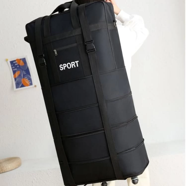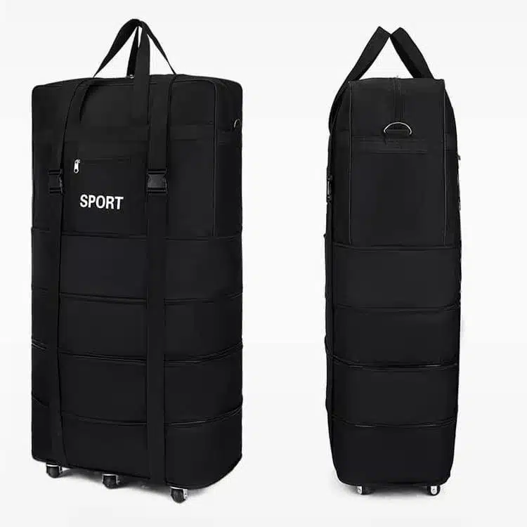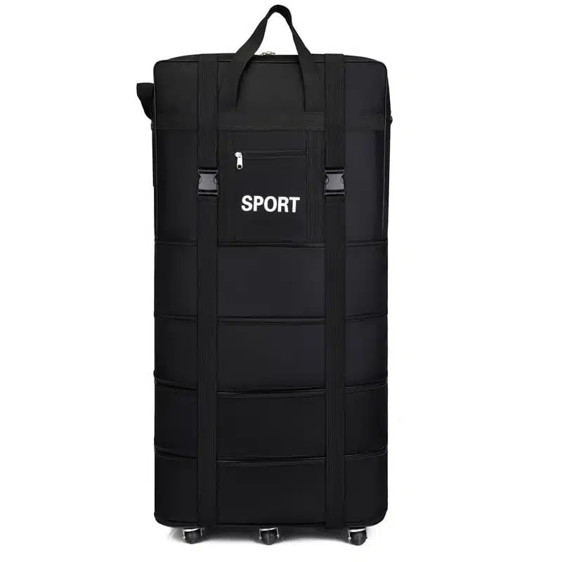 Le sac de voyage à roulettes noir à grande capacité est un choix polyvalent et fonctionnel pour les voyageurs soucieux de leur style. Sa couleur noire intemporelle lui confère une élégance discrète, en faisant un compagnon de voyage adapté à toutes les occasions.