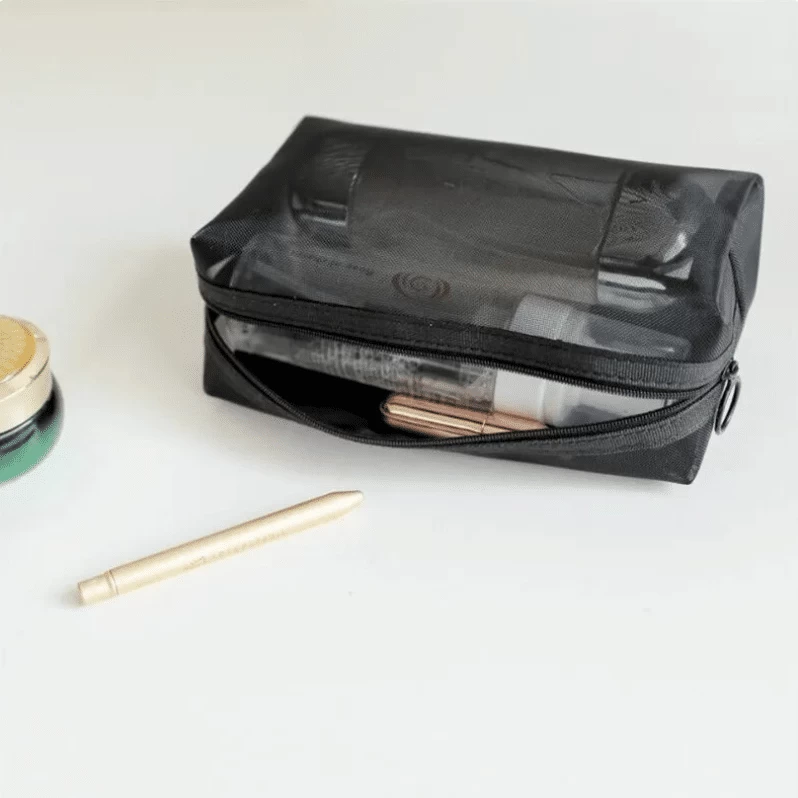 Le design ajouré de cette trousse de voyage n’est pas seulement esthétique, il est également fonctionnel. Le style filet permet une meilleure aération, évitant ainsi l’accumulation d’humidité et les mauvaises odeurs.
