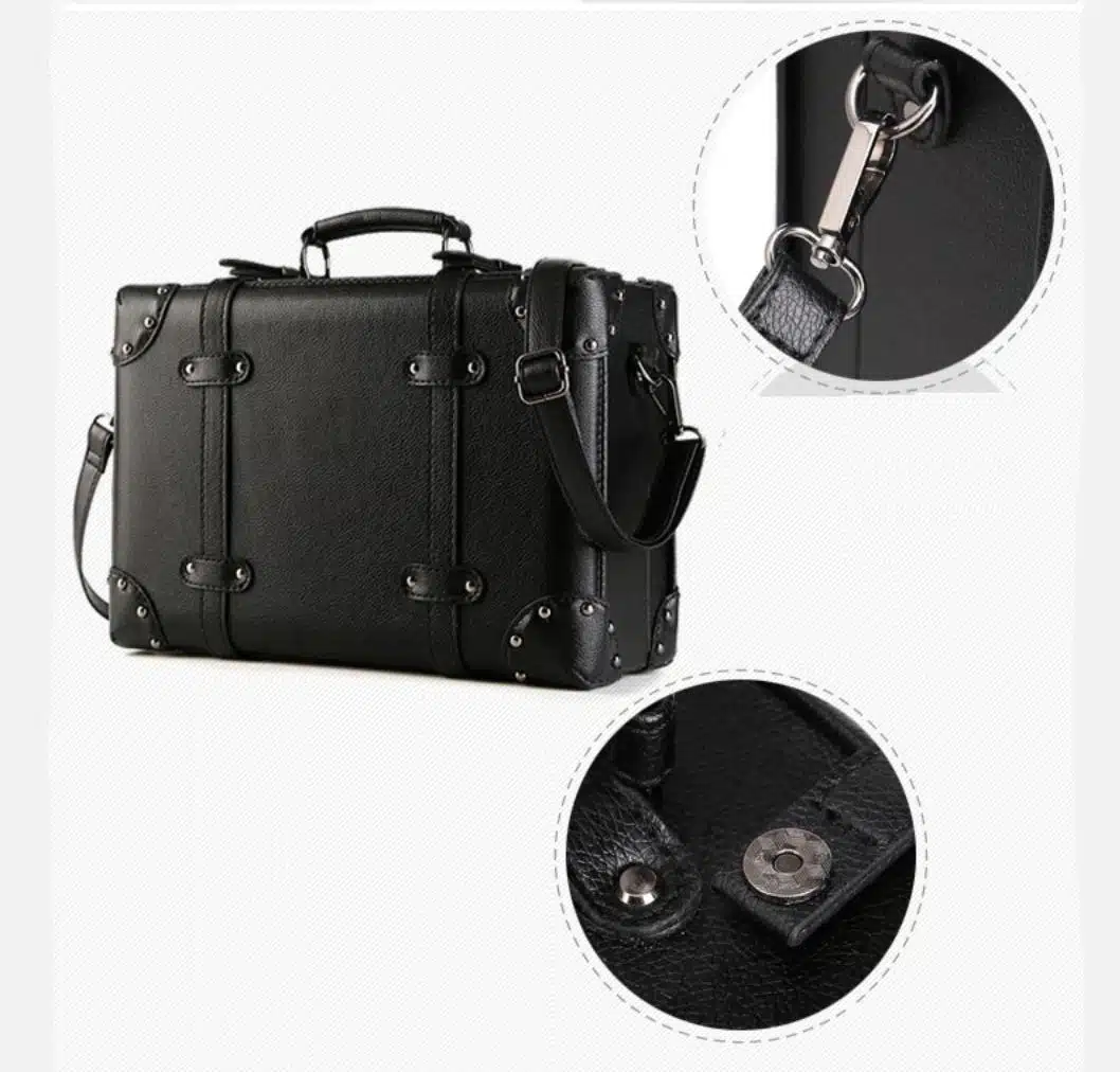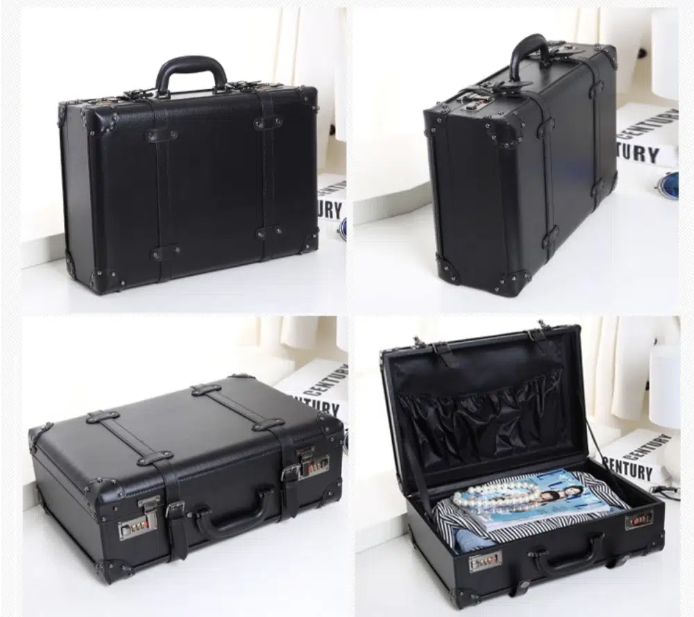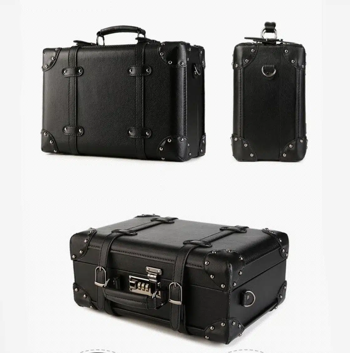 Cette valise de voyage type mallette rétro noire est un produit de haute qualité. Un bagage ultra résistant et robuste au style rétro. Avec cadenas de sécurité intégré et une poignée confortable et fiable pour le transport dans divers lieux différents.
