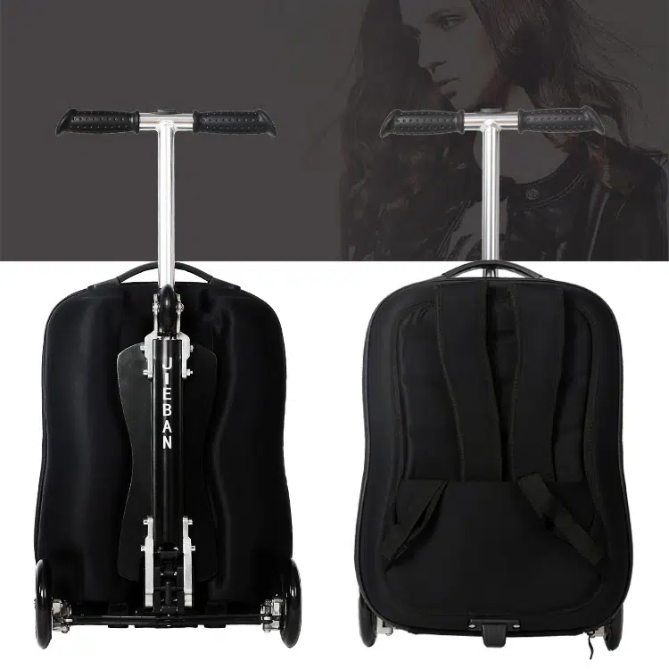 Pourquoi se contenter de tirer votre valise ? Grâce à son design unique de trottinette, cette valise apporte une touche de fun à vos voyages. Les roulettes solides garantissent une balade en douceur, vous permettant de vous rendre à votre destination en style.